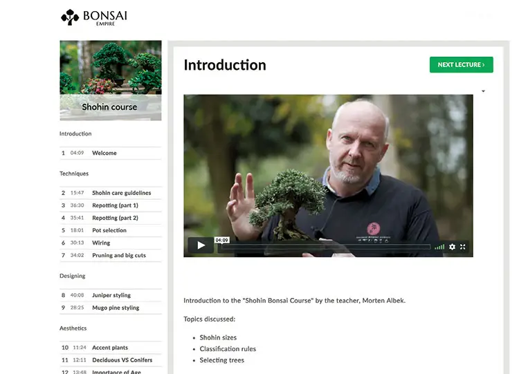 Ein Trailer des Shohin-Onlinkurses ist verfügbar auf www.bonsaiempire.com/courses/shohin-course