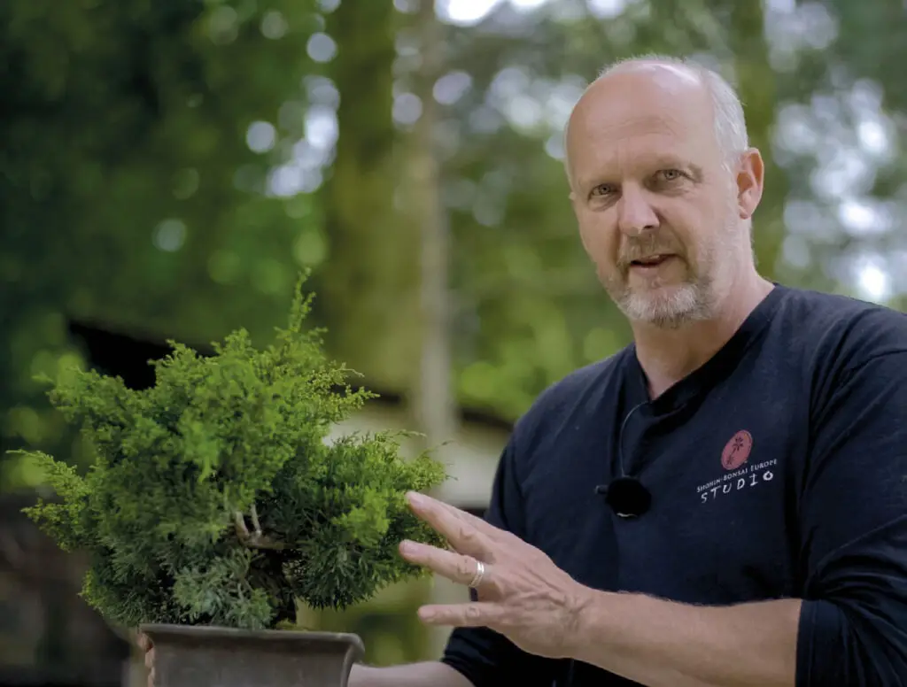 Der Däne erzählt mit natürlichem Charme und Leidenschaft in fließendem, wenn auch nicht perfektem Englisch von seinem Spezialgebiet und seiner persönlichen Art, Shohin-Bonsai zu entwickeln.